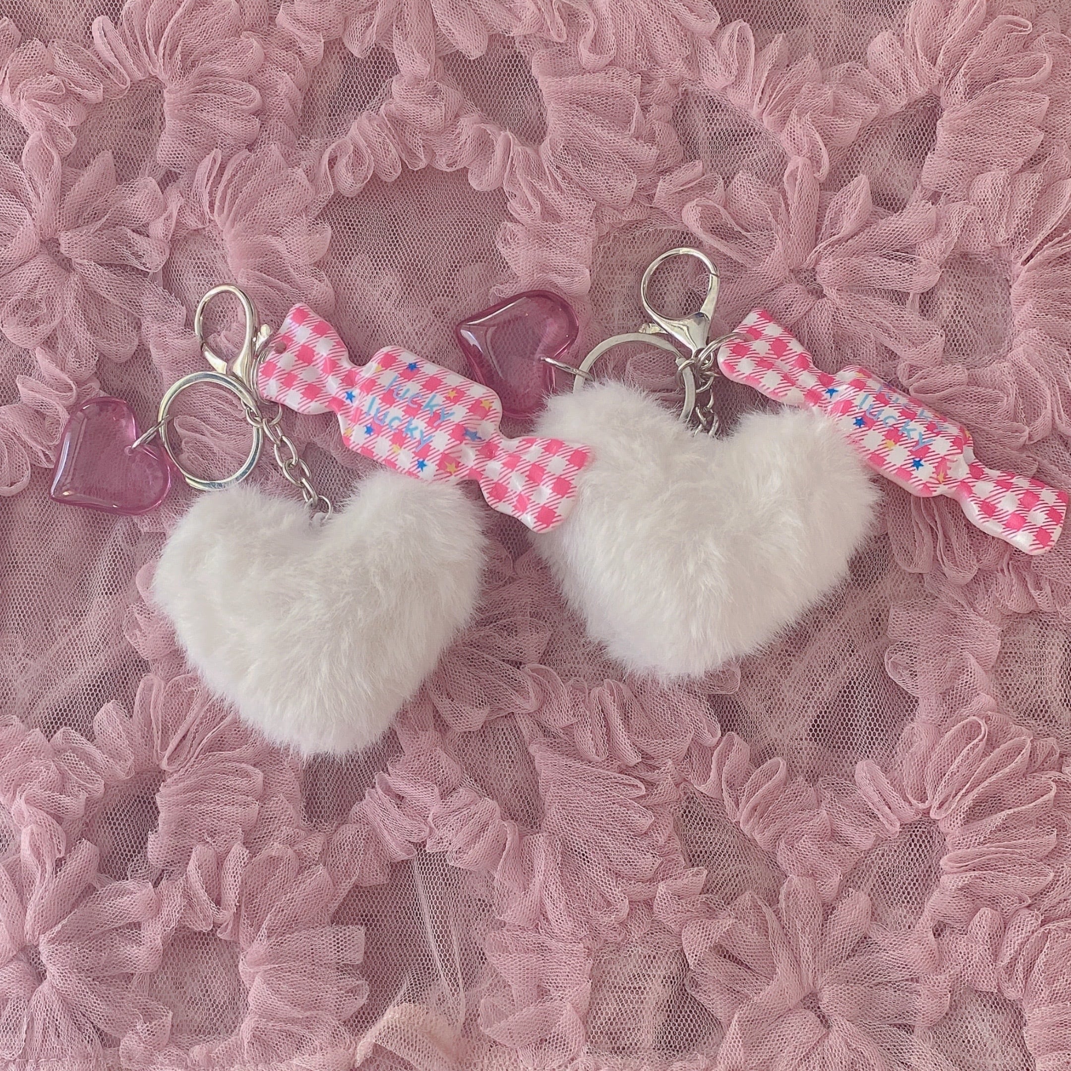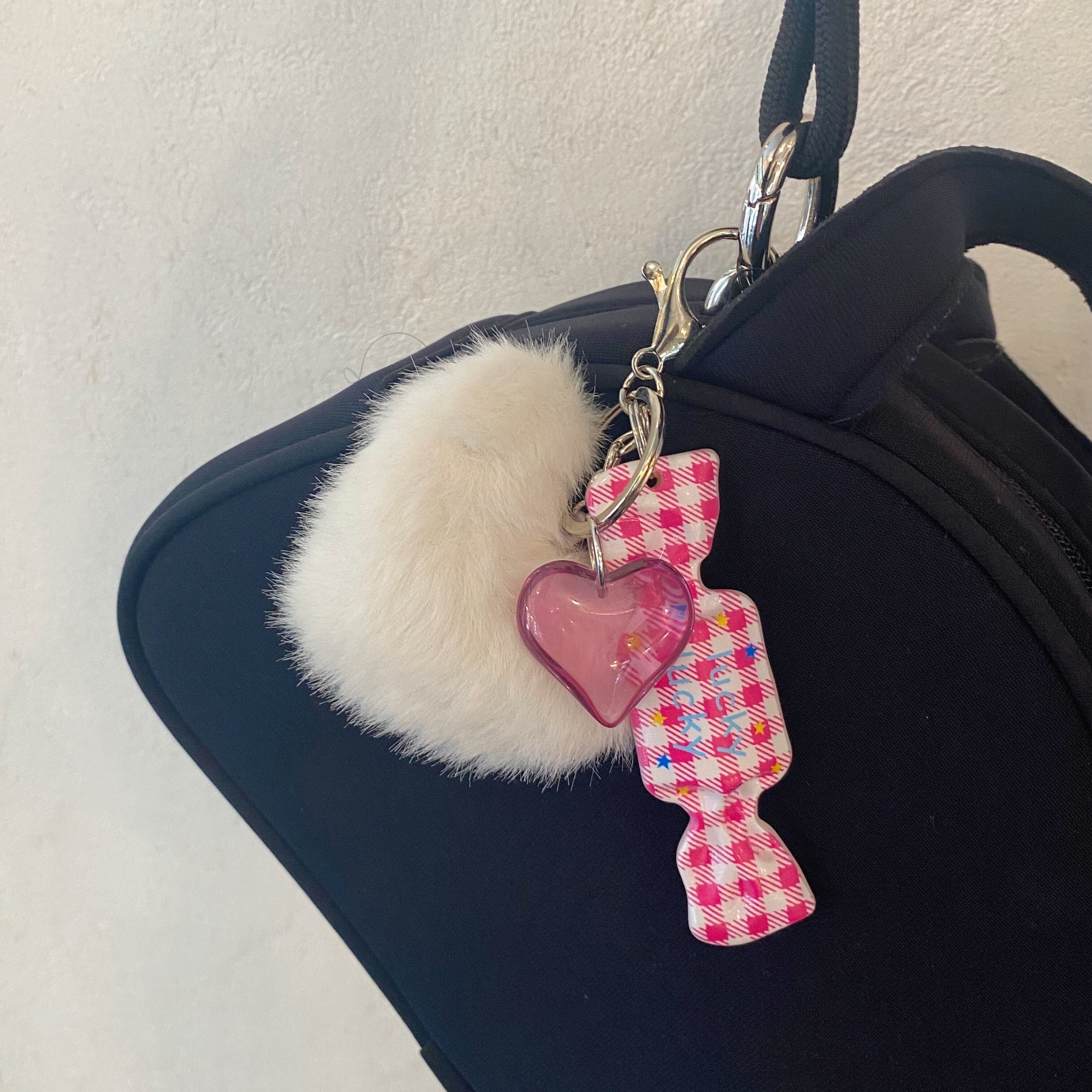 こちらはふわふわのハートに大きなキャンディ、ハートを組み合わせたラブリーなキーホルダーです。