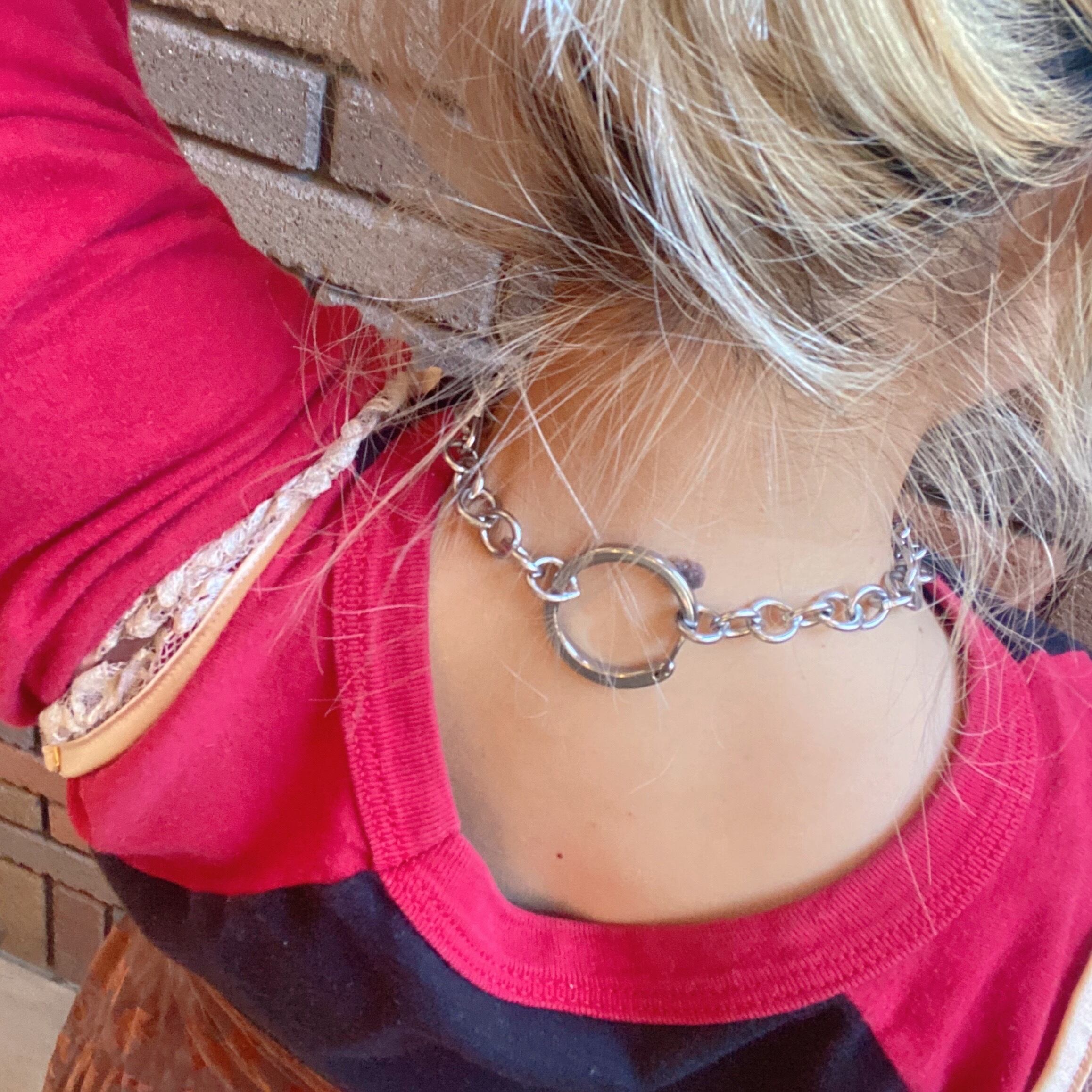 留めるチェーンの穴によっては短く着用して頂くことが可能ですが、これ以上長く着用することはできません。